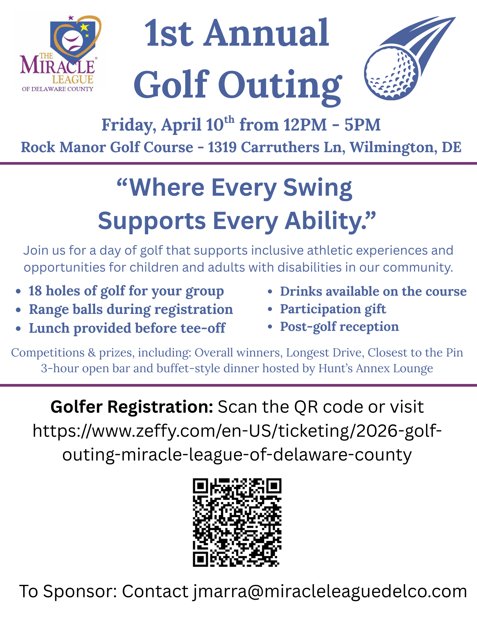 Your reception ticket supports the Miracle League of Delaware County, where children and adults with disabilities experience the joy of baseball.